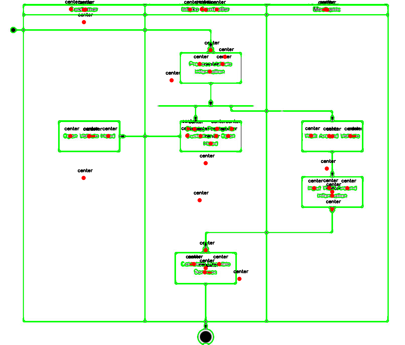 The general idea behind the program I needed was to find the center points of nodes or boxes in a UML diagram. While doing this manually wasn’t difficult, it was certainly time-consuming. Ideally, I wanted the program to produce results similar to the manual method, like the image below.
